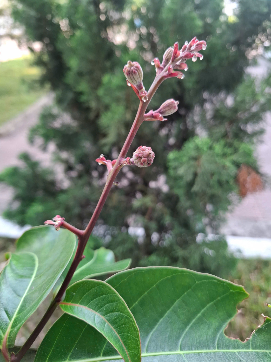 Hiện tượng này phải chăng do cây tiết ra để thu hút côn trùng, chuẩn bị quá trình thụ phấn khi hoa nở ? Giả thuyết do rệp làm tổn thương nụ hoa bị loại trừ vì không phát hiện rệp hoặc sâu bọ.