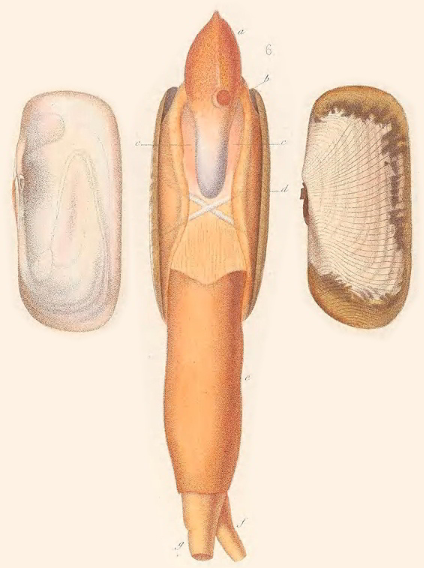 Mô tả: đường viền ở cả hai đầu hình chữ nhật bo tròn hoặc hơi hình thoi, lưng và bụng khá thẳng, mỏ hơi lệch tâm, hình dạng thay đổi; van ở cả hai đầu há rộng; bản lề có 2 răng cửa mỏng manh ở mỗi van, răng cửa sau ở van phải thường bị mất; xoang màng nhện hình bầu dục dài, vươn xa về phía trước, hợp lưu với đường màng nhện ở hầu hết chiều dài; điêu khắc xương cá chéo; vỏ màu vàng trắng, màu thay đổi, không có tia xuyên tâm, màng xương nhện màu nâu ô liu, hầu hết không được bảo quản hoặc chỉ ở hai đầu.