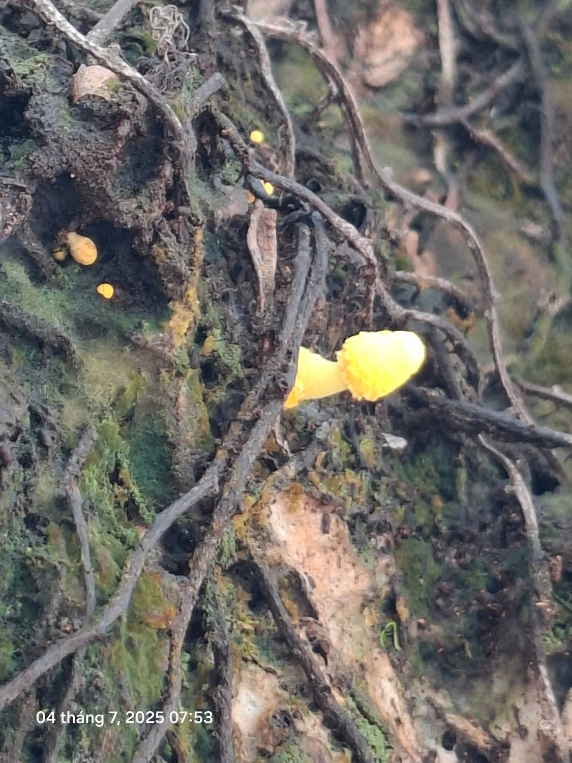 Quả thể non màu vàng. Chúng xuất hiện nhanh chóng sau vài đợt mưa mùa hè, mọc trên thân (phần mục) của cây Sưa (Trắc thối), có tên khoa học Dalbergia Tonkinensis Prain. Chúng cũng nhanh chóng lụi tàn chưa kịp phát triển hết khi nắng gắt kéo dài trở lại. Điều đó cho thấy môi trường ẩm ướt có vai trò quan trọng trong sinh trưởng, phát triển và sinh sản của loài nấm này.