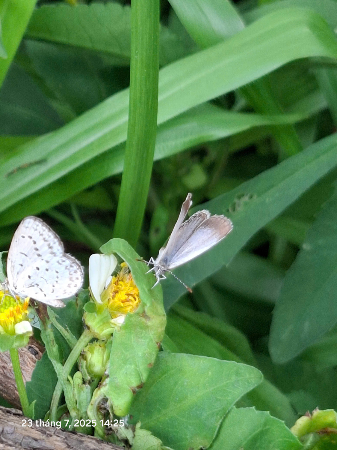 Một đôi bướm cỏ xanh nhạt đang hút mật