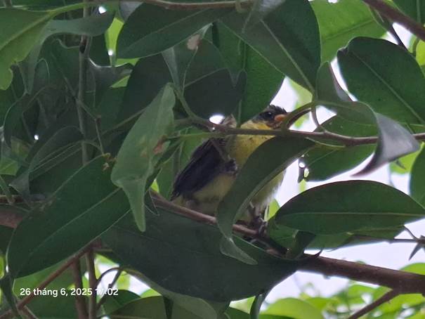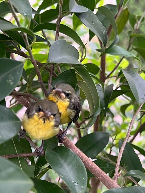 Một gia đình chim với chim trống mái và 2 con chim non đang giai đoạn tập bay. Một con non rơi xuống gốc cây, kêu liên hồi. Chim trống, mái liên tục hót và kiếm mồi. Một con chim non trên cành ăn thức ăn là sâu do bố mẹ kiếm được. Bằng cách nào đó (do không quan sát được liên tục), con chim non rơi xuống gốc cây đã được bố mẹ chuyển lên cành, cạnh chú chim non còn lại.
