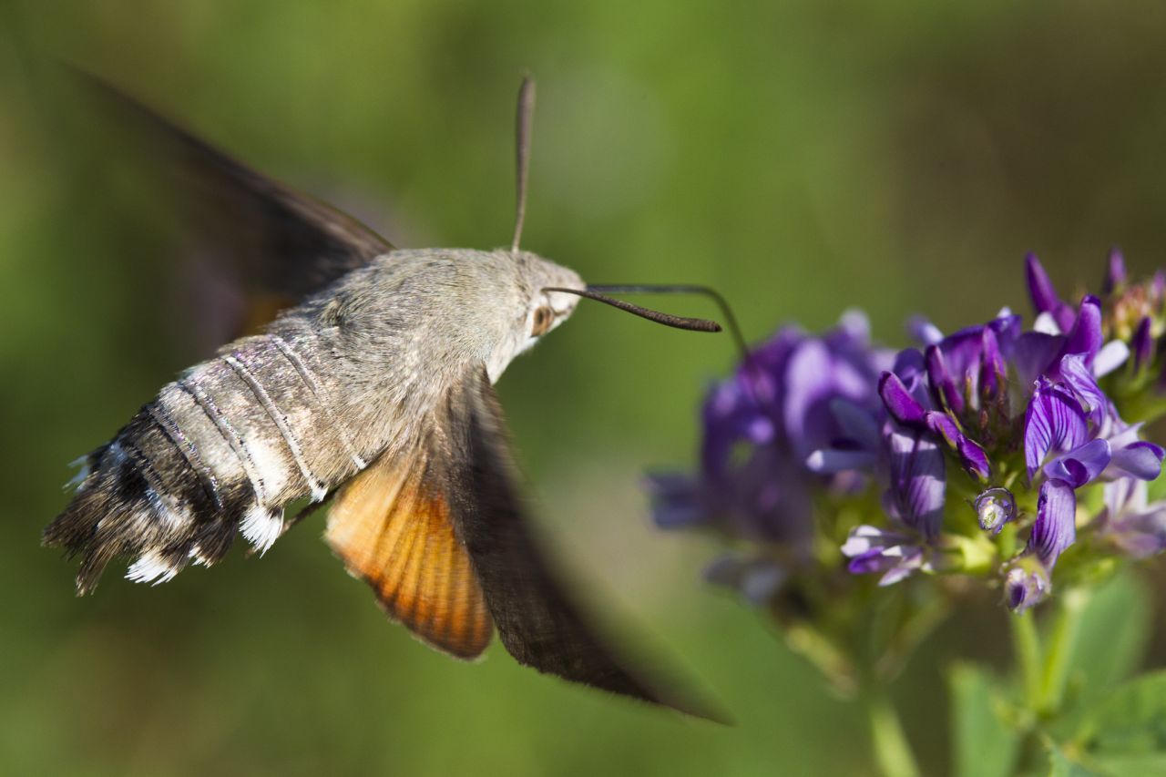 Loài côn trùng giống chim có phần miệng hút khổng lồ, bướm đêm diều hâu chim ruồi hay còn gọi là bướm ruồi đuôi xù còn có biệt danh là “4 trong 1” vì chúng có đặc điểm giống chim, ong, bướm và sâu.