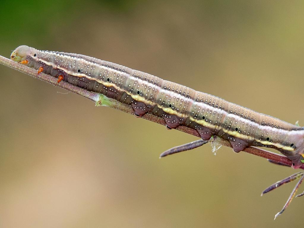 Quan sát loài bướm này (thời điểm chạng vạng tại Cung thiếu nhi Quảng Ninh, 18:29 phút ngày 9/6/2025), cho thấy loài bướm này ước lượng khoảng cách của mình với hoa, những bông hoa dễ bị lắc lư trong gió khi bướm đêm kiếm ăn. Chúng có vòi dài, khi hút mật chúng đưa vòi chính xác vào bộ phận nhụy (cơ quan sinh sản cái, chứa mật), đập cánh liên tục trong không trung và mỗi hoa chúng tiếp xúc vòi khoảng 1 đến 2 giây. Không giống như nhiều loài bướm khác có tập tính đậu xuống bông hoa và hút mật, việc chụp ảnh rõ nét loài bướm này khá khó khăn vì chúng di chuyển liên tục, trong khi bông hoa thường lắc lư trong gió.