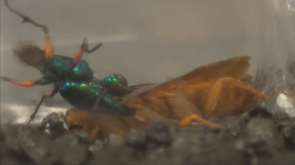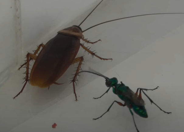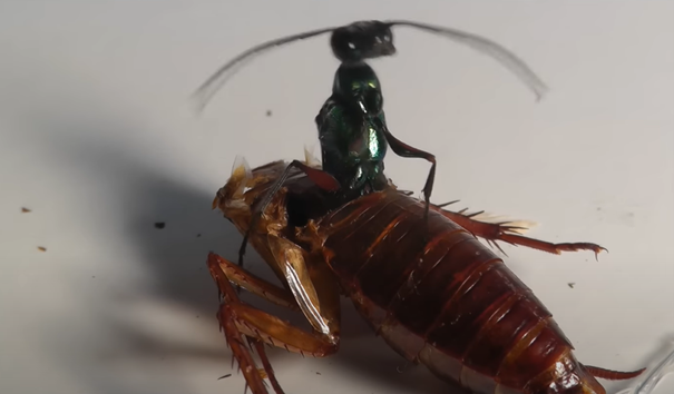 Các hình ảnh dưới đây được lấy từ Neuro-parasitogy of the Jewel Wasp and its Zombie Cockroach Host (Ký sinh thần kinh của ong bắp cày ngọc lục bảo và vật chủ gián thây ma của nó). Nguồn: Hiệp hội Côn trùng học Hoa Kỳ (Entomological Society of America)