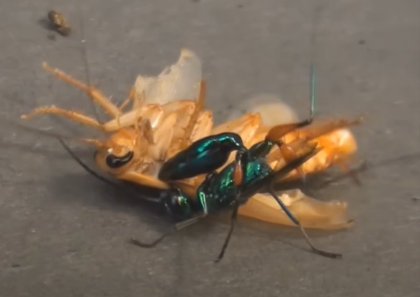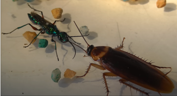 Gián bị ong bắp cày ‘thao túng”, kéo gián qua râu gián đưa vào tổ