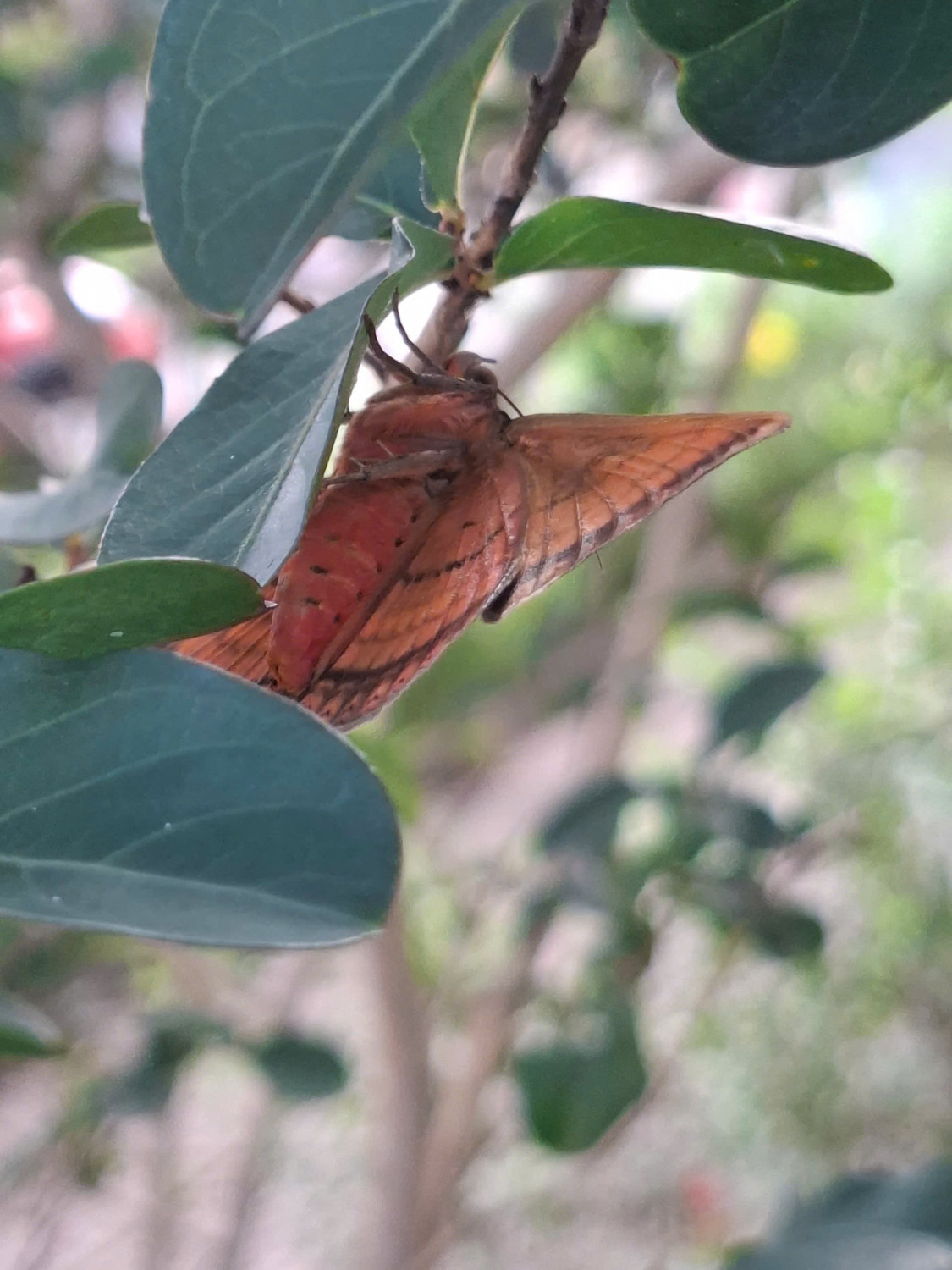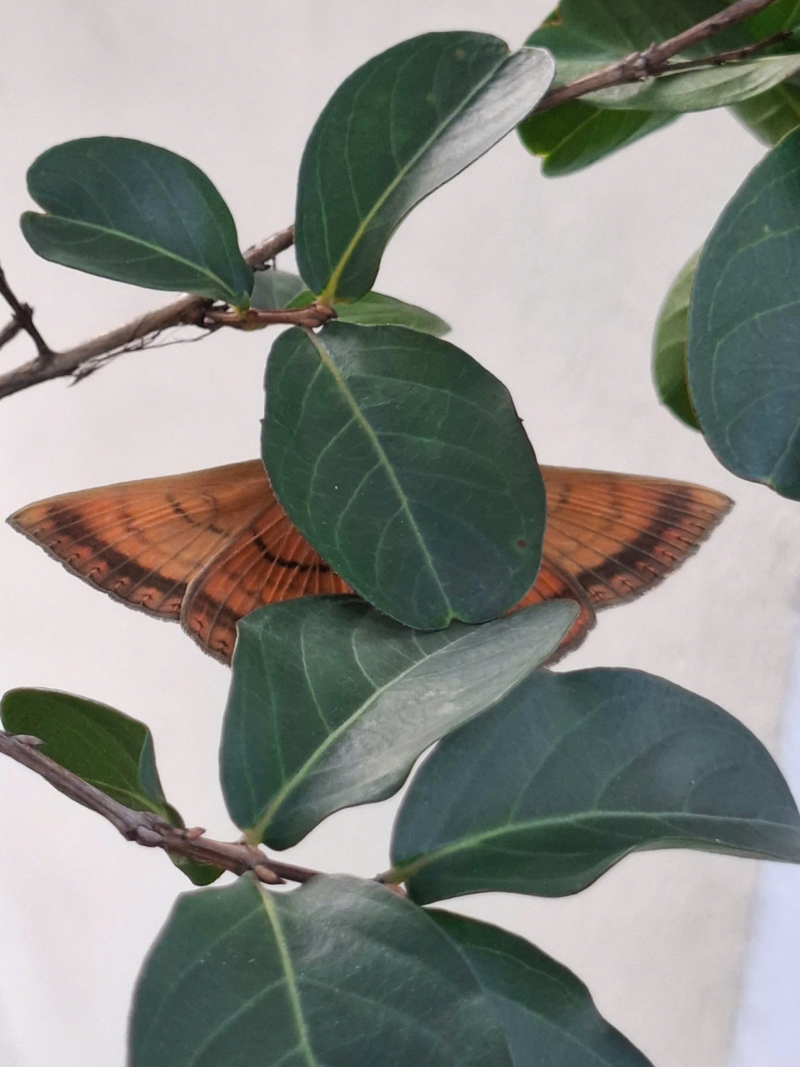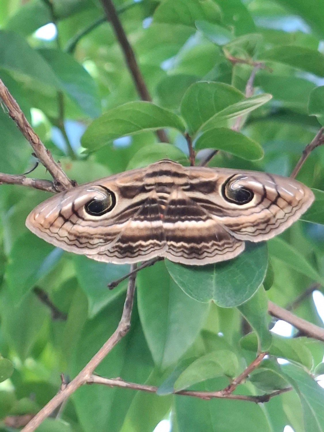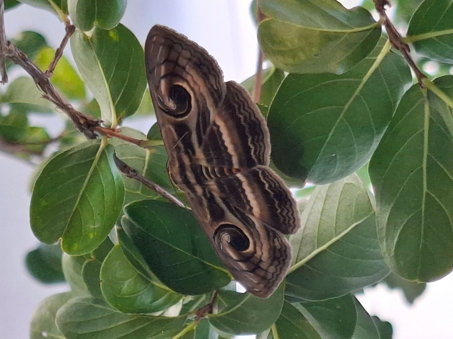 Bướm đêm cú mèo đậu trên cây Tường vi (tên khoa học Lagerstroemia indica Linn), nhìn mặt lưng