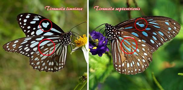 Tirumala limniace (Bướm hổ xanh- blue tiger) /Tirumala septentrionis (Bướm đốm xanh-Dark Blue Tiger) |