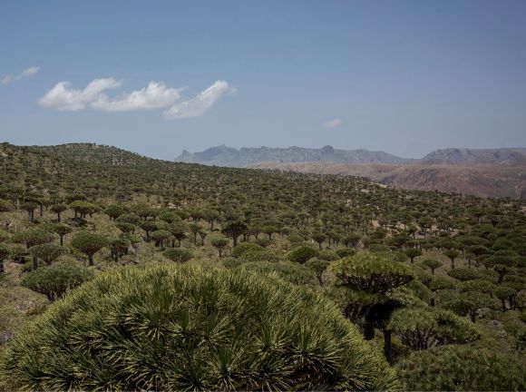 Cây huyết dụ Socotra mọc chậm trên nhiều ngọn đồi của hòn đảo