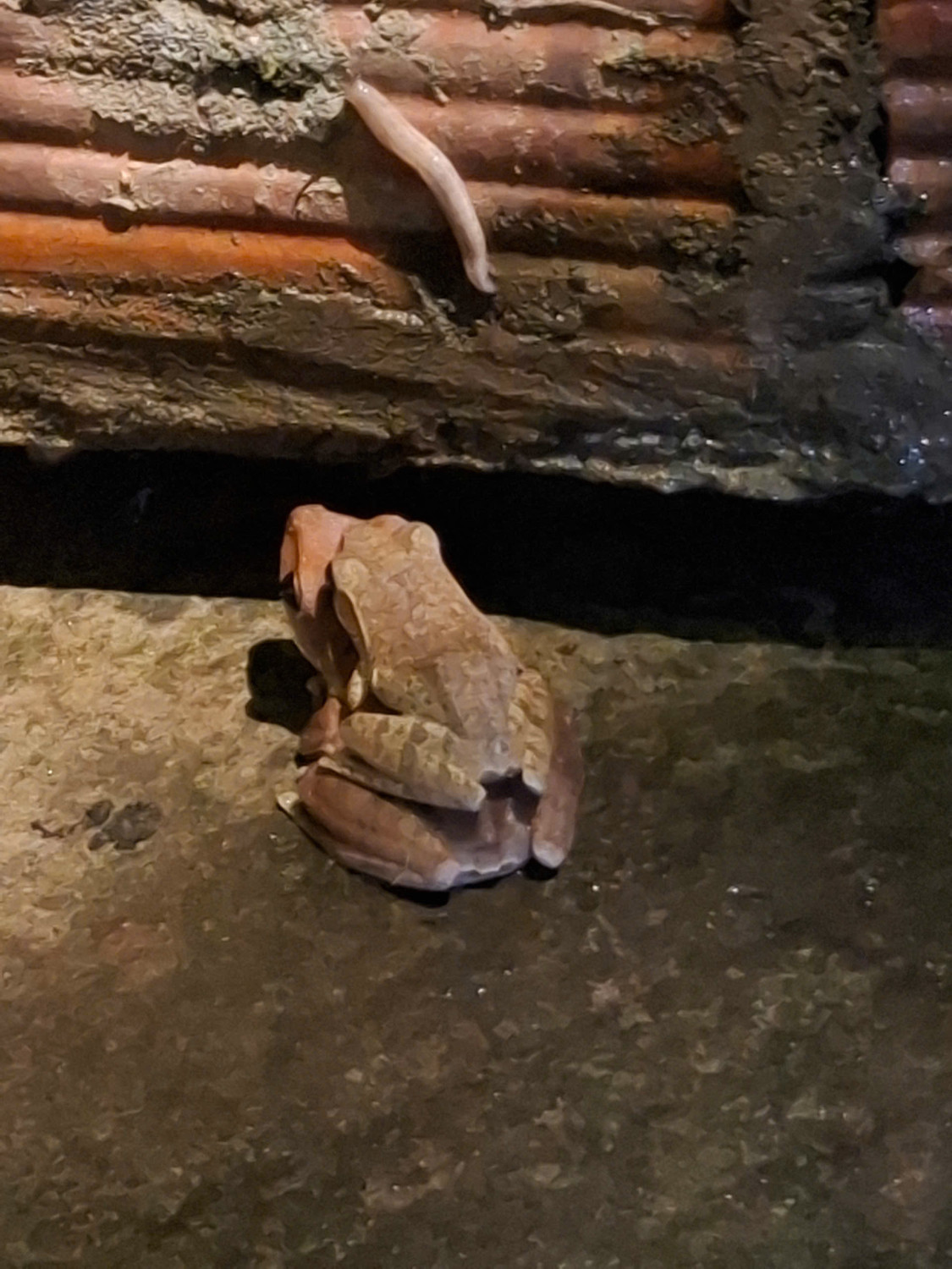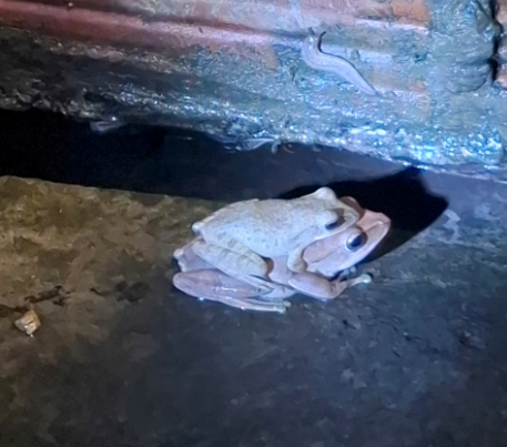 Một loài ếch cây hoạt động vào buổi tối, trước sự chứng kiến của ốc sên trần