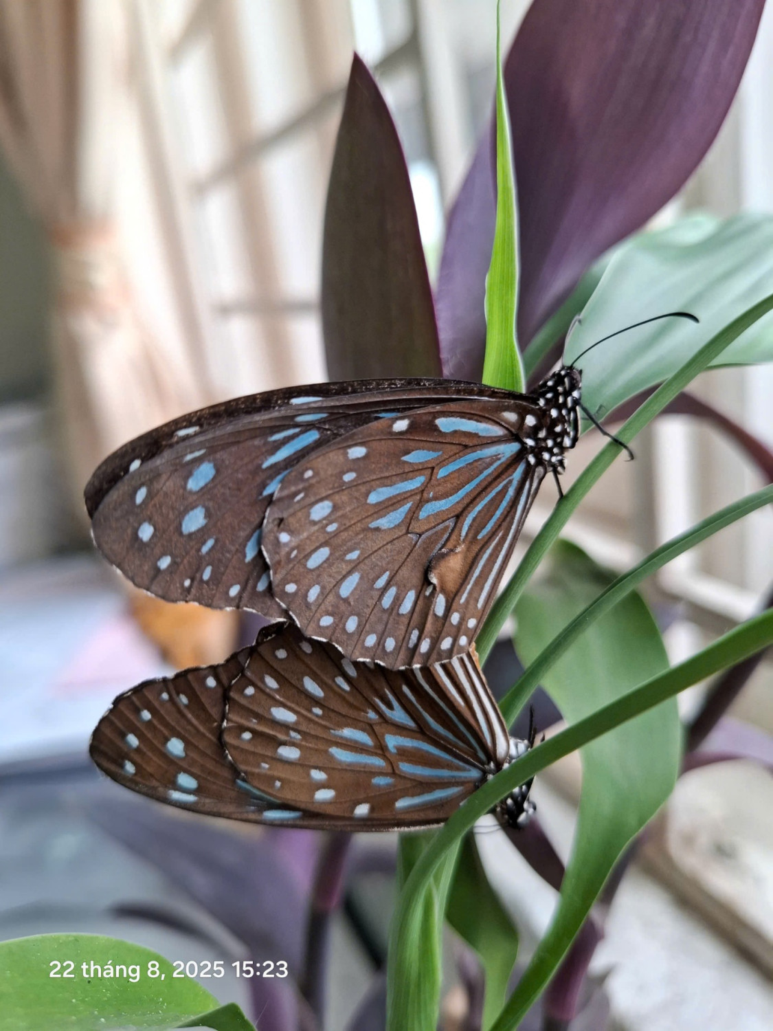 Cận cảnh ở bướm đốm xanh, tên khoa học Tirumala septentrionis (Butler, 1874)
